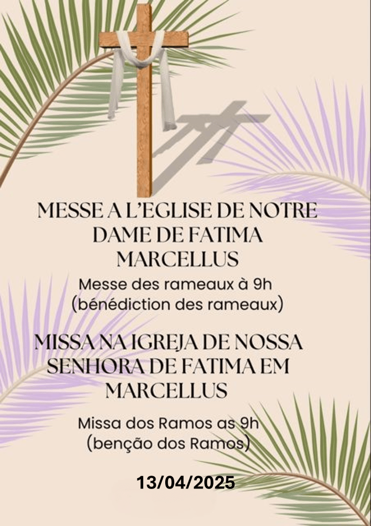 La messe des Rameaux sera célébrée à 9h en l’église de Marcellus. Venez nombreux pour bénir les rameaux et entrer dans cette semaine sainte avec recueillement.