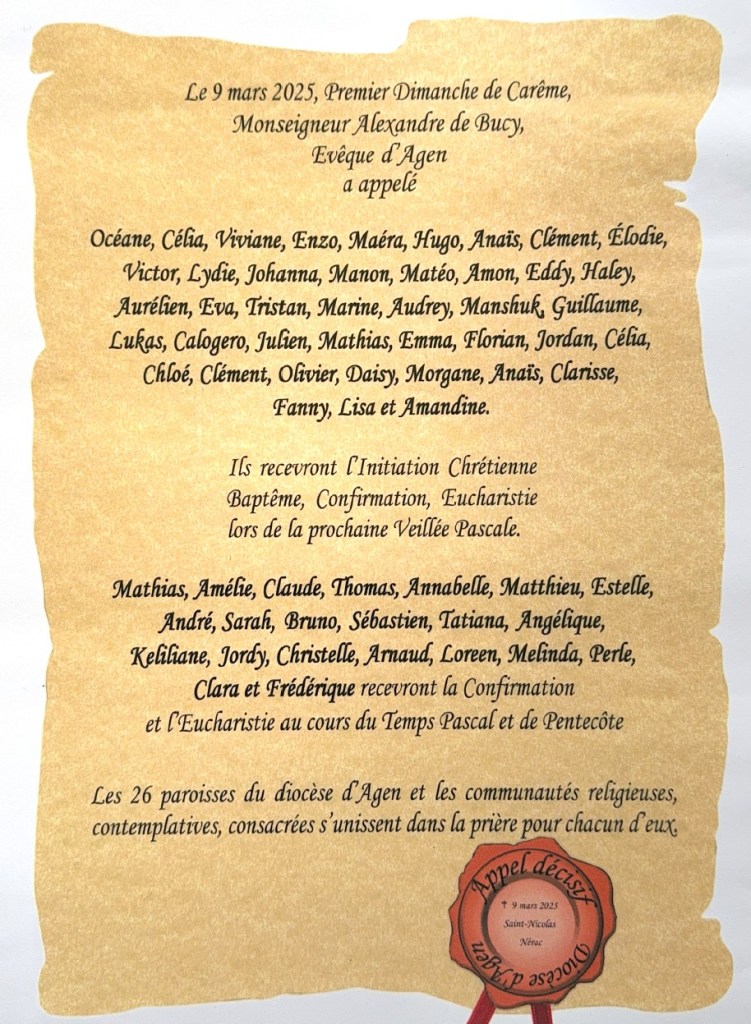 Le 9 mars 2025, premier dimanche de Carême, 77 catéchumènes du diocèse d’Agen ont vécu une étape fondatrice de leur chemin de foi : l’appel décisif.