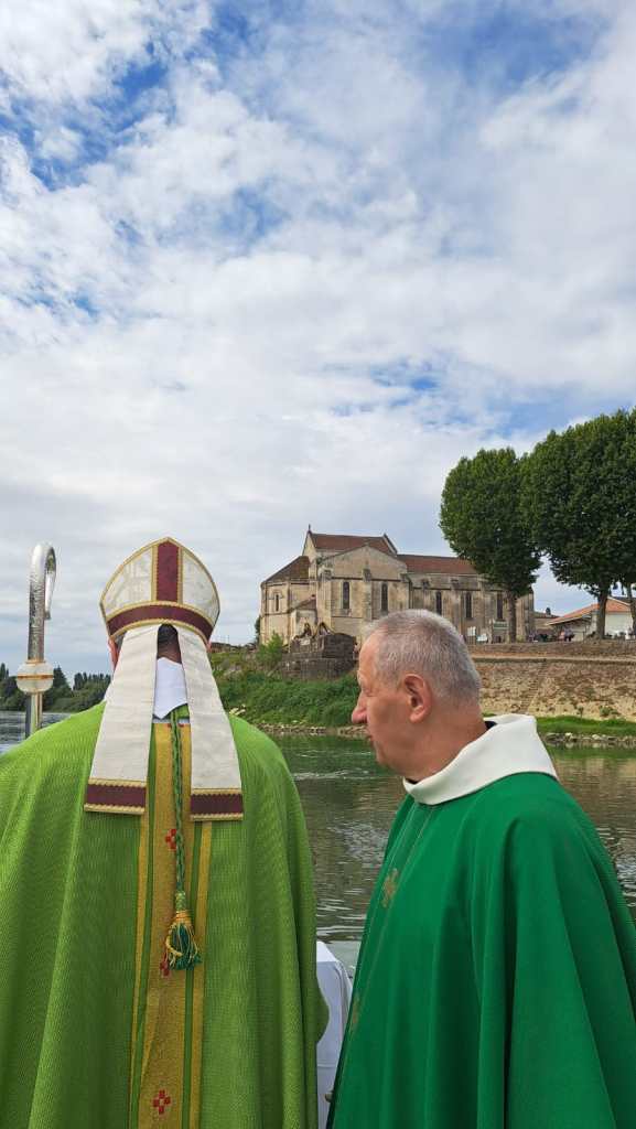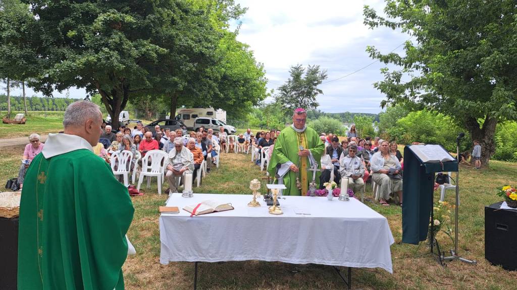 À l’ombre généreuse du vieux platane, l’autel dressé sur l’herbe faisait face aux embarcations amarrées. Les chants portés par l’assemblée ont traversé le courant jusqu’à la rive droite ; on raconte que même les promeneurs de l’autre côté du fleuve se sont arrêtés pour écouter. Dans son homélie, Mgr de Bucy a salué « la fécondité missionnaire d’une Église qui ose sortir de ses murs », invitant chacun à « laisser le Christ guider la barque de sa vie ».
