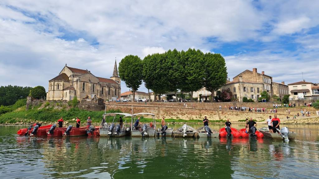 Au terme de la messe, évêque et prêtres ont rejoint les bateaux des pêcheurs et sauveteurs locaux pour les asperger d’eau bénite : geste de protection pour ceux qui travaillent ou se divertissent sur les eaux parfois capricieuses de la Garonne. Les rameurs en tenue rouge-et-noire, fiers héritiers des traditions fluviales, ont formé une véritable haie d’honneur.
