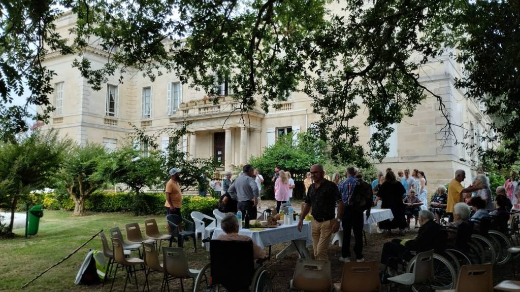 Quelques kilomètres plus loin, la maison de retraite de Pardiac nous ouvrait ses portes. Le chef cuisinier, « carte blanche » à la main, avait préparé un véritable festin matinal : viennoiseries encore chaudes, jus de fruits frais et sourires généreux des résidents.