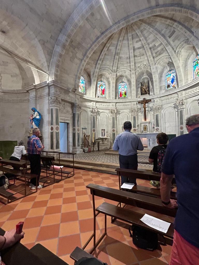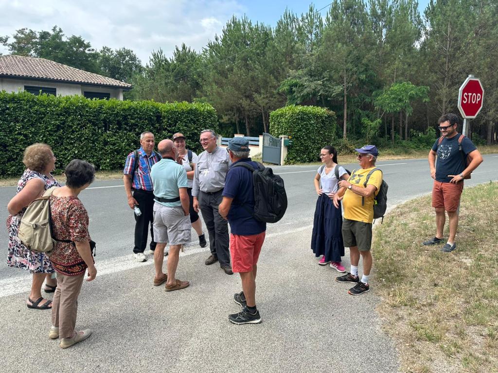 La journée s’est achevée dans la collégiale du Mas d’Agenais, autour de l’évêque, assis dans les stalles du chœur : partage d’écoute et de projets pour notre paroisse. Un paroissien l’a ensuite accueilli pour la nuit, prolongeant l’hospitalité vécue tout au long de la route.