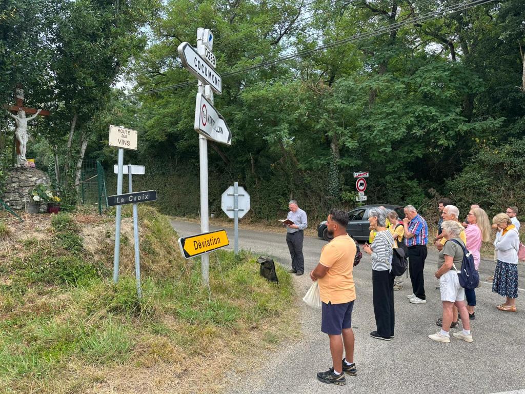 L’après-midi, halte chez Cédric et ses parents pour découvrir leur exploitation agricole et reprendre des forces autour d’un café. Puis cap sur Caumont : prière des Nones, présentation de l’église par un ancien du village et rafraîchissements offerts par la municipalité.