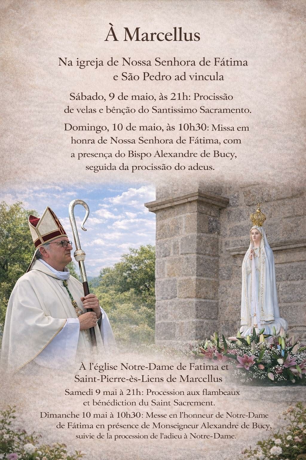 La messe solennelle sera célébrée en l’honneur de Notre-Dame de Fatima, en présence de Monseigneur Alexandre de Bucy.